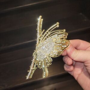 Brand New Gold Rhinestone Butterfly Hair Clip