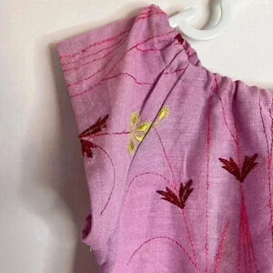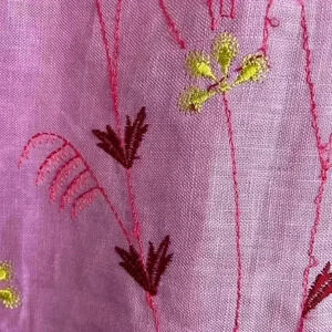 Cotton fabric in light purple with embroidery in burgundy pink and lime green