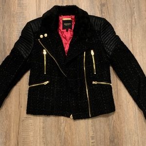 Black tweed, faux fur and imitation leather jacket