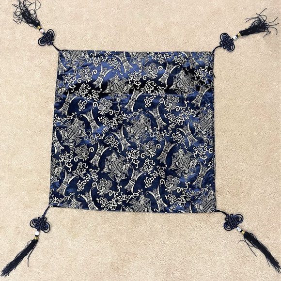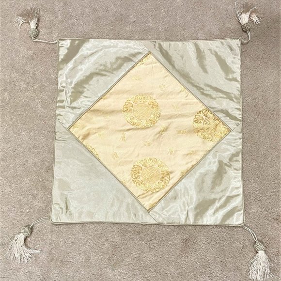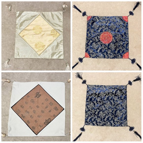 Brand New Lot 5pc Chinese Oriental Cushion Cover Satin Calligraphy Tassels