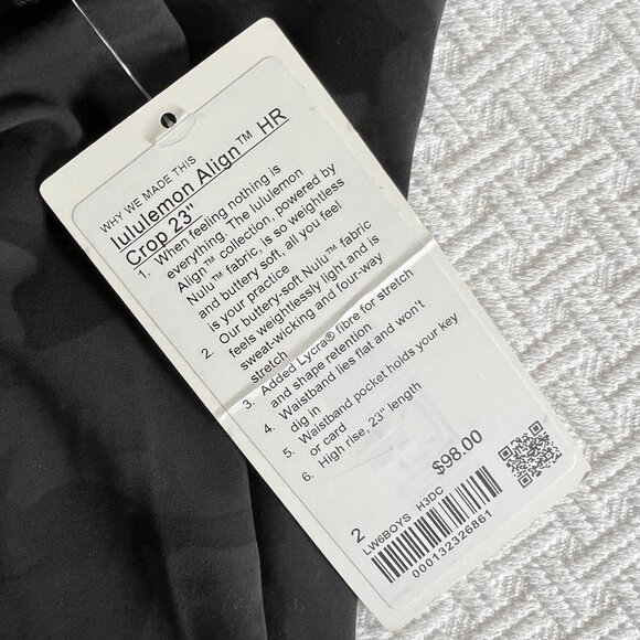 Brand New Lululemon Women’s Size 2 Black Camo Align HR Crop 23” Pants Athletic