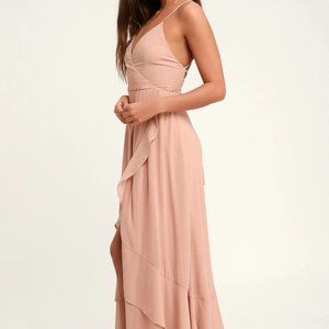 Brand New Lulus In Love Forever Light Blush Lace-Up High-Low Maxi Dress