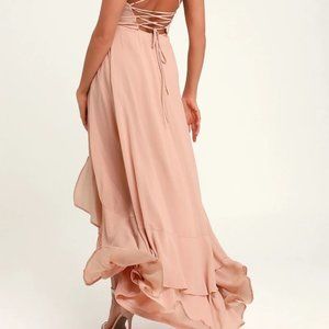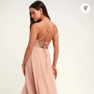 Brand New Lulus In Love Forever Light Blush Lace-Up High-Low Maxi Dress. Beautiful style, very romantic.