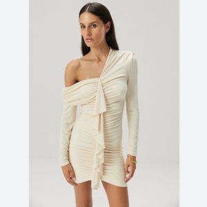 Brand New MISHA LONG-SLEEVE RUFFLE-FRONT SLIM MINI DRESS