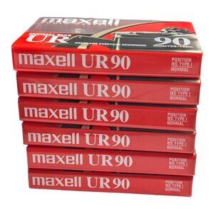 Description:This is a brand new, sealed 6-pack of Maxell UR 90 Minute Normal Bias Blank Audio Cassette Tapes. Perfect for recording music, voice, or archiving.