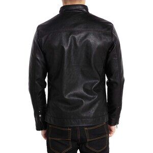 Brand New Men's Black Leather Stand Collar Moto Biker Zip Faux Jacket
