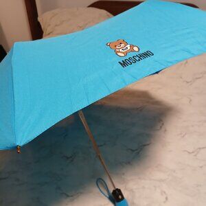 Cute Toy Moschino Bear on beautiful Turquoise shade compact travel umbrella