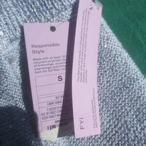 Brand New NWT Acrylic Short 16" Skirt with Glitter and Sparkle Accent - Size Small. In excellent brand new condition with tags. The waist measures 15" (30 waist) before any stretching at all. Sheer and super sexy while still being classy and sensual. The color is a soft pastel calm blue.