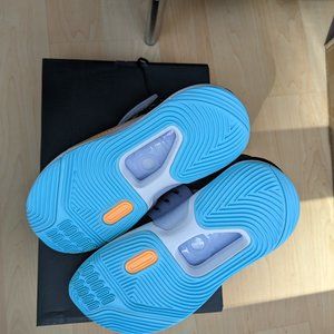 - Tuned Traction: Grooves and ridges in the sole help provide multi-directional traction and court feel. A stiff piece under the arch helps keep the shoe stable. Both shoes together reveal the face of a skull.