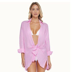 Introducing our Millie Tie cover up, now in a radiant blushing pink for a vibrant update. This piece reimagines the timeless menswear-inspired shirting silhouette with our soft, luxurious linen. Featuring a convenient tie closure, it's the epitome of effortless beachside chic. Perfect for those seeking a blend of comfort, elegance, and easy style in their beachwear.
