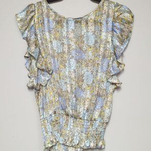 Brand New Pleione Floral Flutter Short Sleeve Top