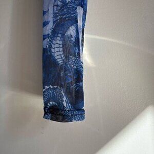 Brand New Pretty Little Thing Women’s 4 Blue Dragon Print Long Sleeve Crop Top