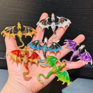 Brand New Red Flying Dragon Brooch Rhinestone Flying Dragon Pin