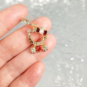 Brand New S925 Silver Rhinestone Hello Kitty Red Heart Earrings