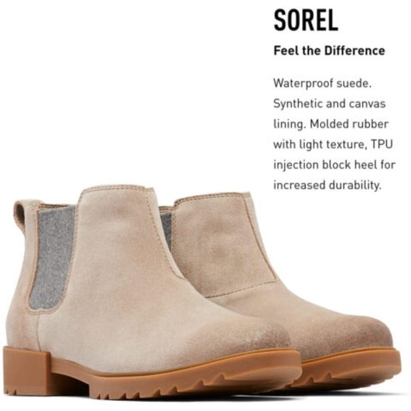 Brand New SOREL Women's Emelie 2 Chelsea Waterproof Taupe Leather Boots