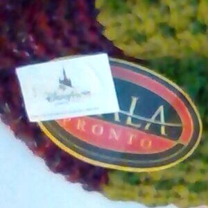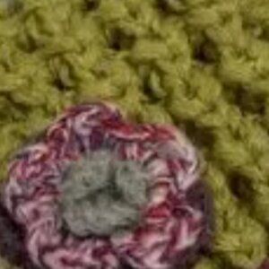 Brand New Scala Pronto Women's Rosette Green & Purple Crocheted Beanie Hat