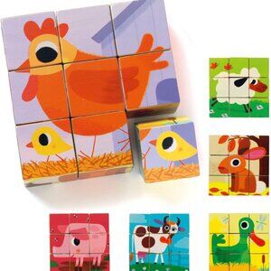 Brand New Sealed Djeco Wooden Cube Puzzle 'PiouPiou & Co" (9 cubes) Animals