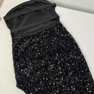Brand New Shein Women's Small Black Sequin Strapless Eveningwear Slip Dress Gown Strapless Sexy Cheeky Sparkly Statement Stretchy