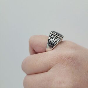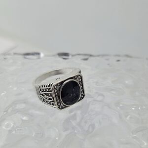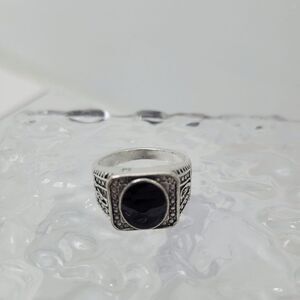 Brand New Silver & Black Round Ring #a Size: 8.5 US