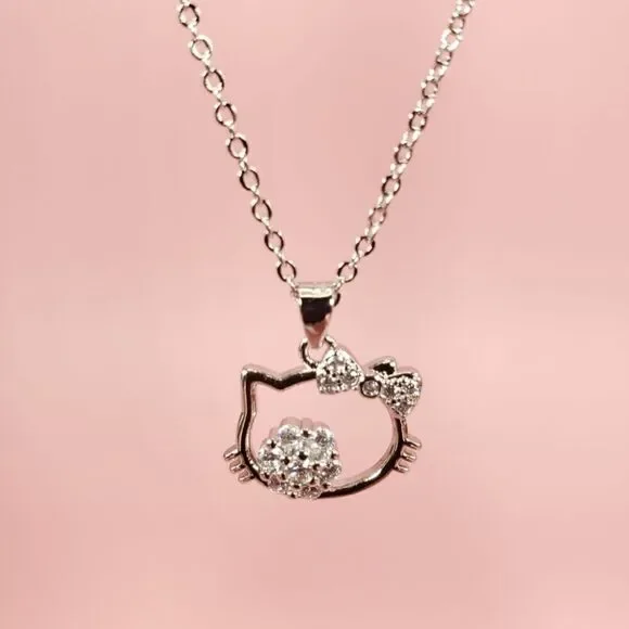 Brand New Silver Rhinestone Hello Kitty Necklace