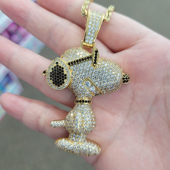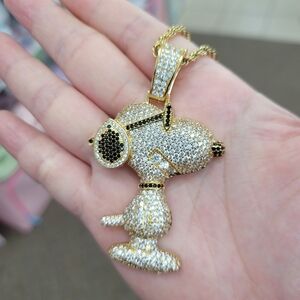 Brand New Snoopy Gold Stainless Steel Rhinestone Necklace