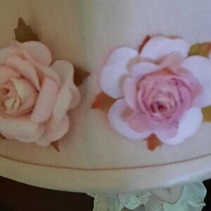 This is a unique table lamp with handmade flower shade. 40cm tall.