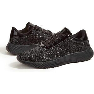 Brand New Women Black Rubber Glitter Sparkly Lightweight Tennis Shoes LUCKY STEP
