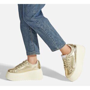Brand New Women Gold Rubber LUCKY STEP Platform Sneakers Wedge Retro Shoes