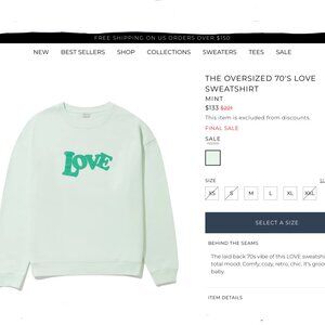 Brand New Women's KULE Oversized 70's Love Sweatshirt