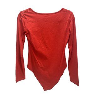 Brand New Women’s Long Sleeve Solid Red Square Neck Bodysuit, Size Medium