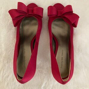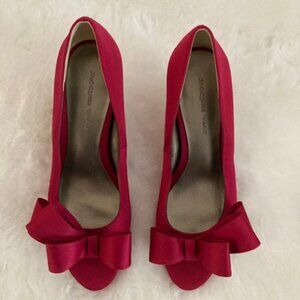 Wow the Crowds with Jacques Vert Ultimate Luxury Cranberry Satin Peep Toe with Bow High Heels.