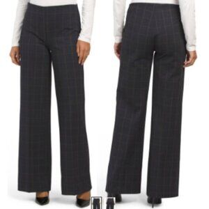 Brand New Women's Nicole Miller Windowpane Print Wide Leg Trousers Pants