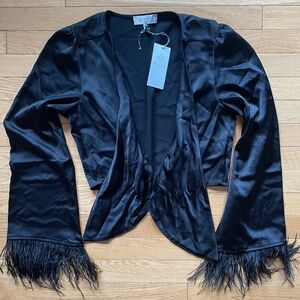 Brand New Women’s Wayf Satin and Feather Open Jacket Top
