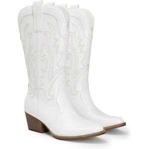 Exquisite Embroidery: With delicate floral embroidery across the synthetic leather, these cowgirl boots effortlessly elevate your look with a feminine touch and elegance.