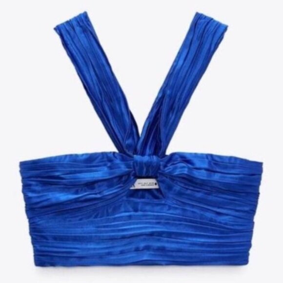 Brand New Zara Women's Blue Cut-Out Cropped Tank Top