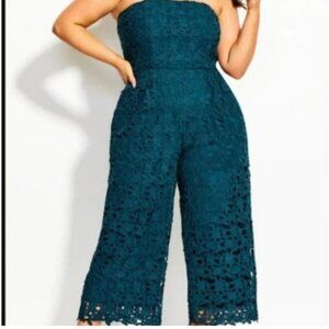 Brand new fully lined teal crochet jumpsuit. Left side zipper. Can be worn strapless or with straps. Bonus, this jumpsuit has side pockets. Size medium(size 18).