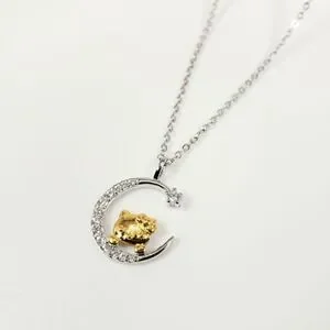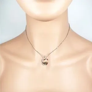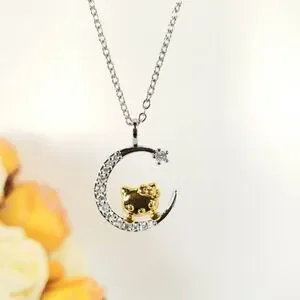 Brand New Silver Rhinestone With Gold Hello Kitty Necklace