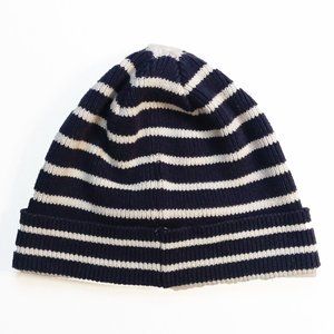 Brand Unknown Navy And White Striped Knit Baby Hat Size Unknown