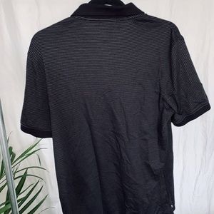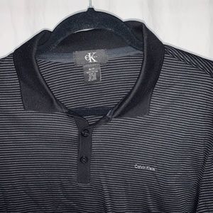 brand new Calvin Klein 100% cotton polo shirt in colour black with white stripping pattern. Can be worn casually or formally.