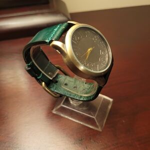Stylish watch featuring a green leather strap and gold accents. Perfect for any occasion.