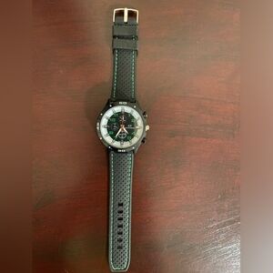 Stylish GT sports watch with a black and green design. Features a bold dial and durable strap.