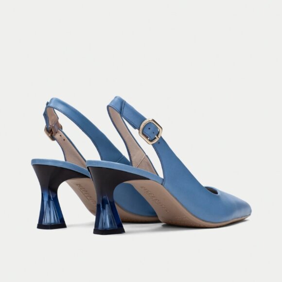 Pointed slingback with a slightly rounded toe and lucite heel, making it a stylish and very comfortable choice. This model incorporates Triflow technology, triple padding that provides a cushioned effect when walking.