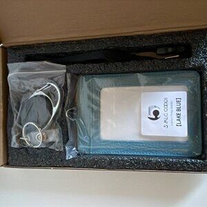 *♪ Brand new Lake Blue Leather card holder lanyard, ID, badge holder *♪