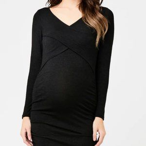 Day or night, our Cross Front Nursing Dress will elevate your look from simple to sophisticated. Made from a super soft and stretchy textured knit fabric, this dress features full length sleeves and side seam gathering. The cross front design cleverly conceals easy nursing access, allowing you to keep this beauty on rotation long after pregnancy.