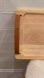 Stylish light wood tray with sleek brown handles. Ideal for serving beverages and snacks.