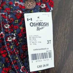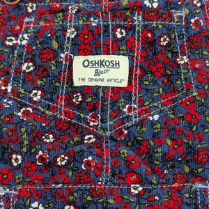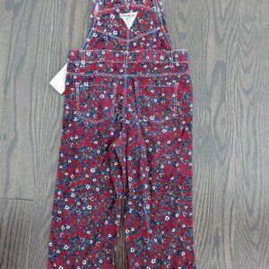 Brand New OshKosh B'gosh overalls size 3T, made from a soft corduroy material. Navy blue with red flowers.