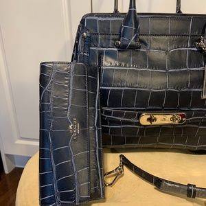 Very pretty elegant brand new croc style coach purse, not used before, classic look, good for everyday work and formal occasion, comes with shoulder strap for ease of carrying, purse dimension: 12" x 10" x 5", wallet dimension: 7.5" x 3.5" x 1", all metal parts are still wrapped with plastic