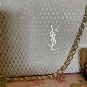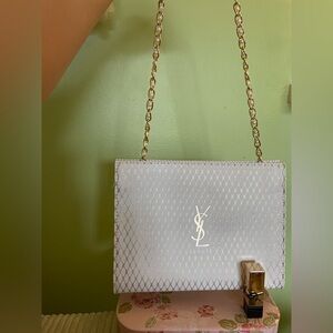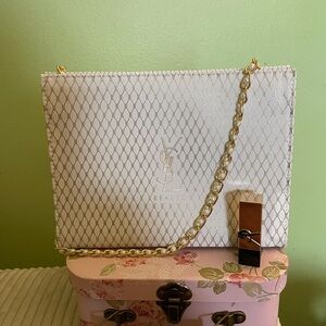 Brand new YSL White and Gold Cosmetic Bag and lipstick