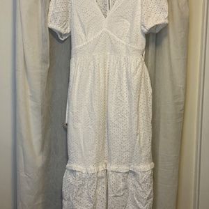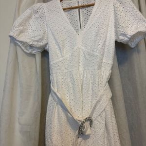 Sweet white broderie anglaise midi dress, brand new with tags. This is a gorgeous, versatile dress with detachable belt, made from pure cotton.