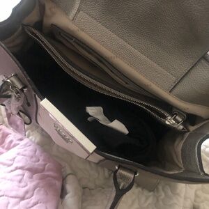 This is a cute Guess handbag. Has two compartments. Hand straps, zipper and button closure.